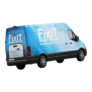 Le jour du rendez-vous, il se rend directement à l’adresse indiquée avec les pièces nécessaires pour effectuer la réparation sur place, sans déplacement en atelier.